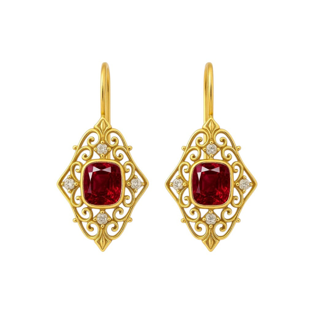 Gold earrings studded with laboratory diamonds