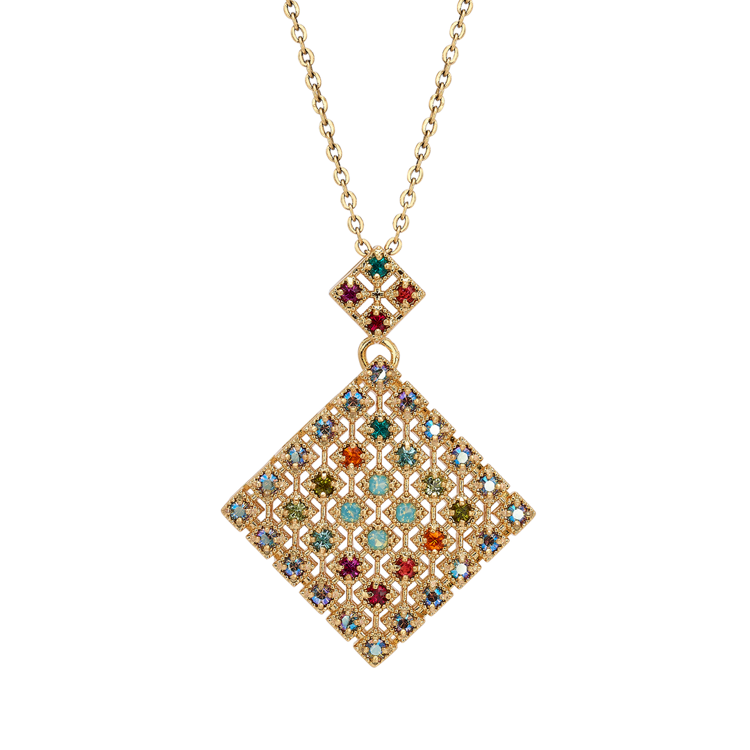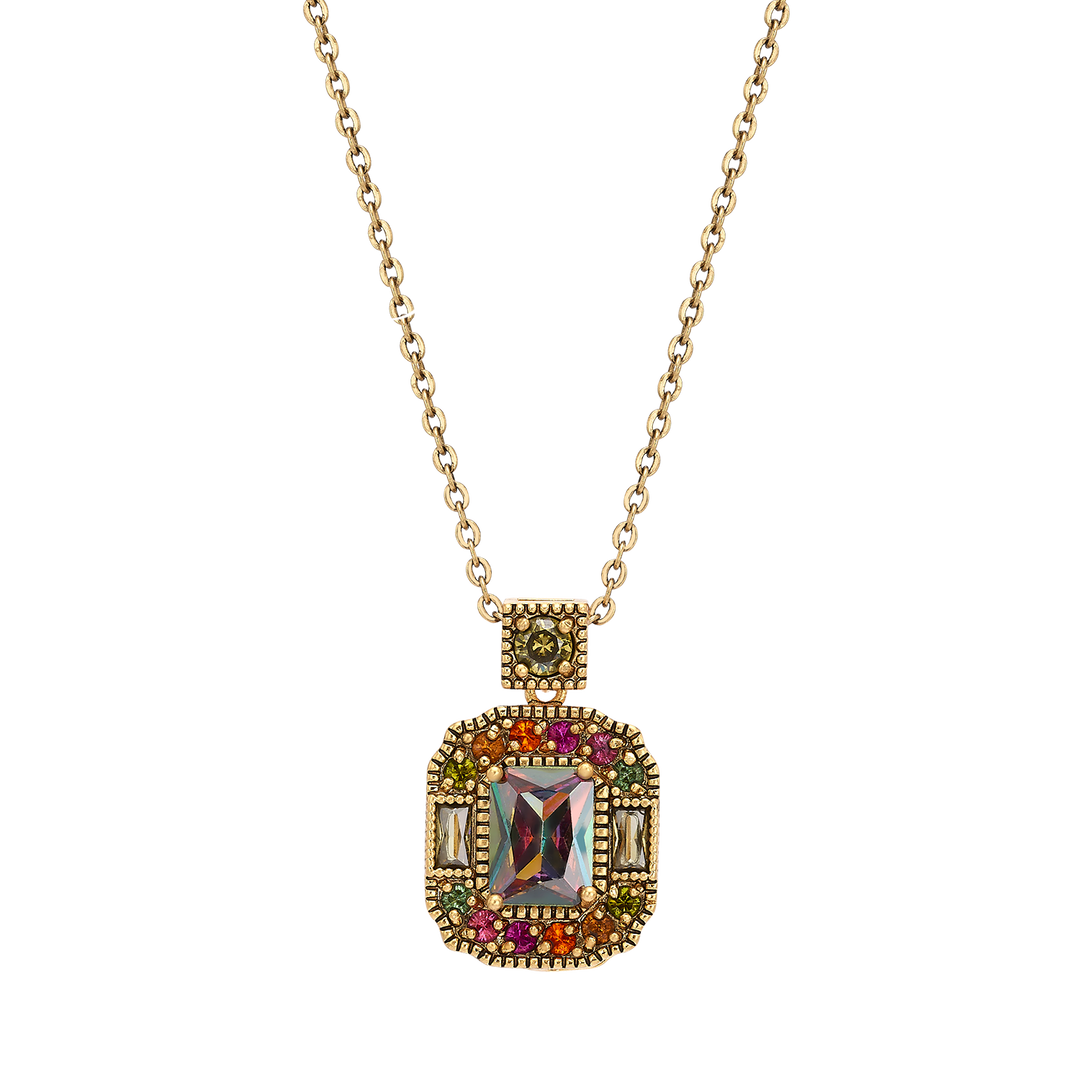 18K gold-plated necklace with oval pendant with colorful zircons M Heritage