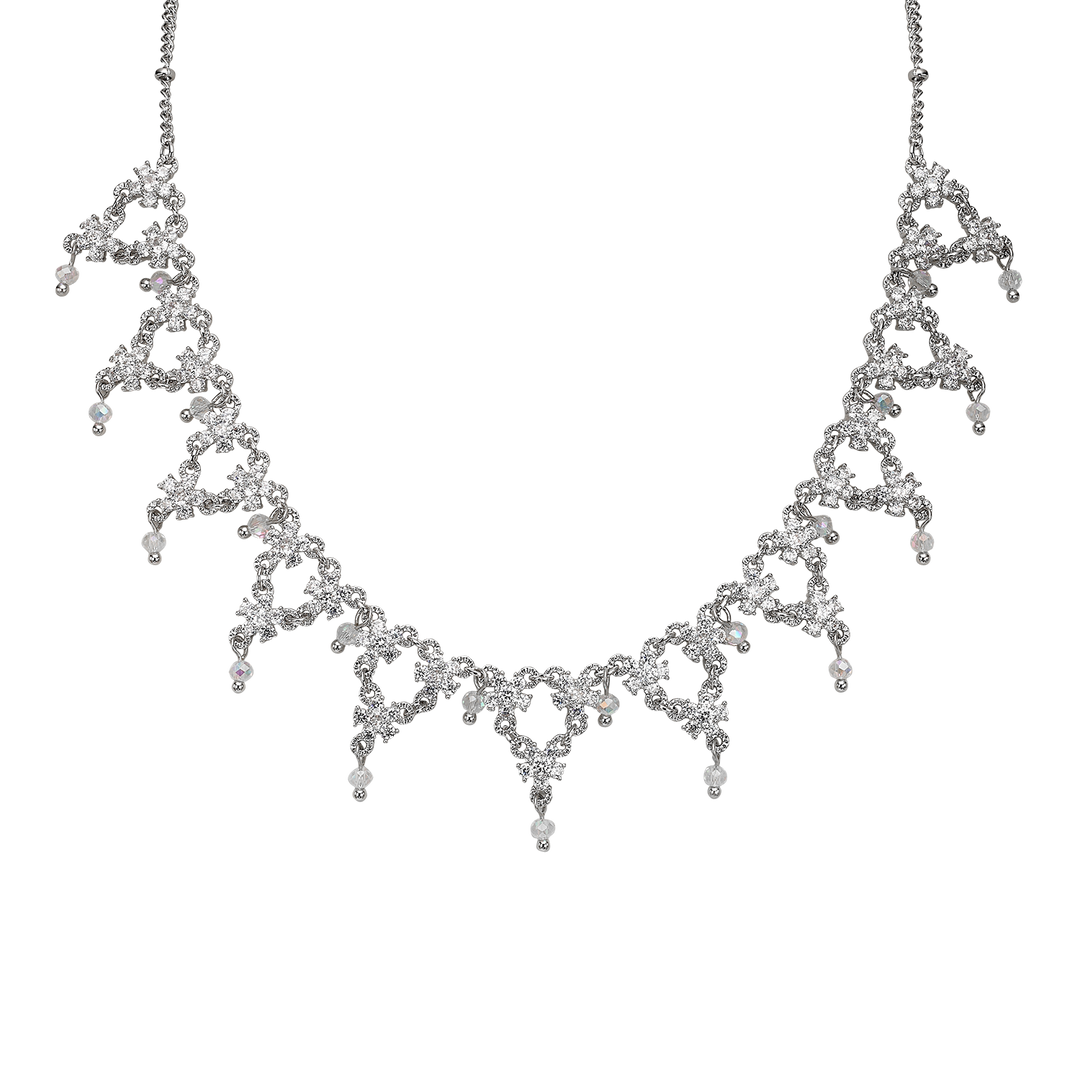Rhodium-plated Star of David necklace with lab-grown opal stones