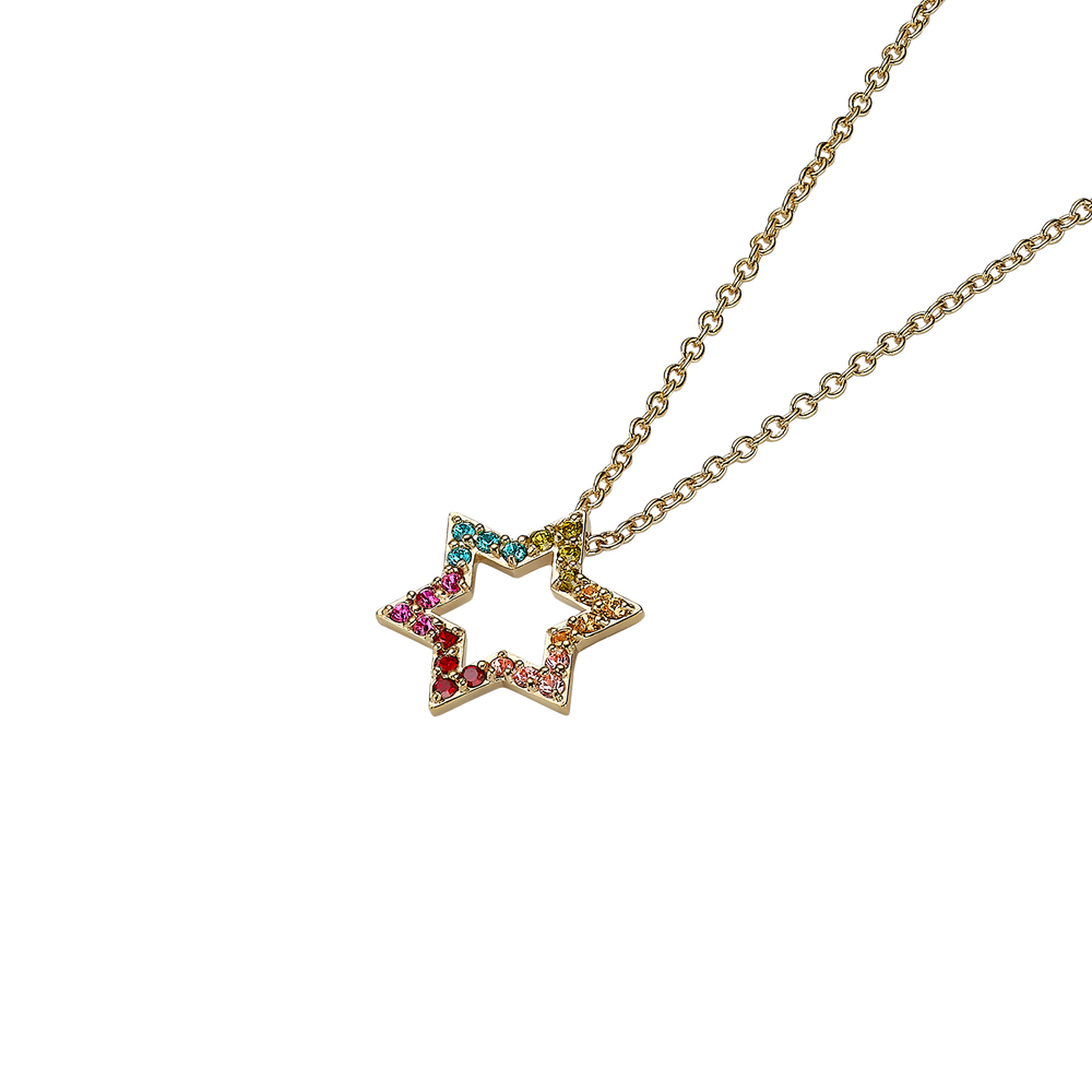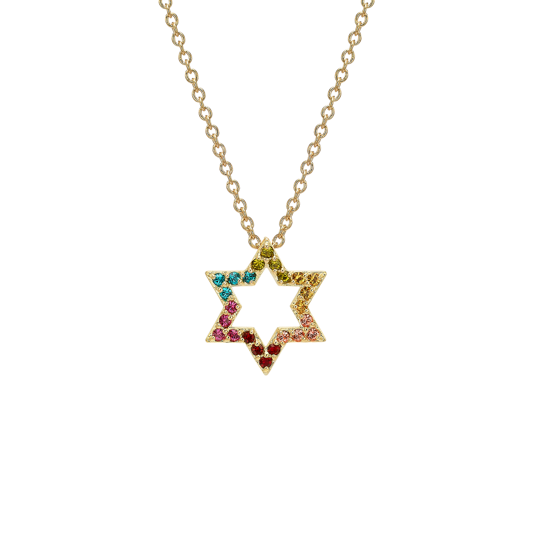 Star of David necklace, 18K gold plated, inlaid with colorful zirconia stones