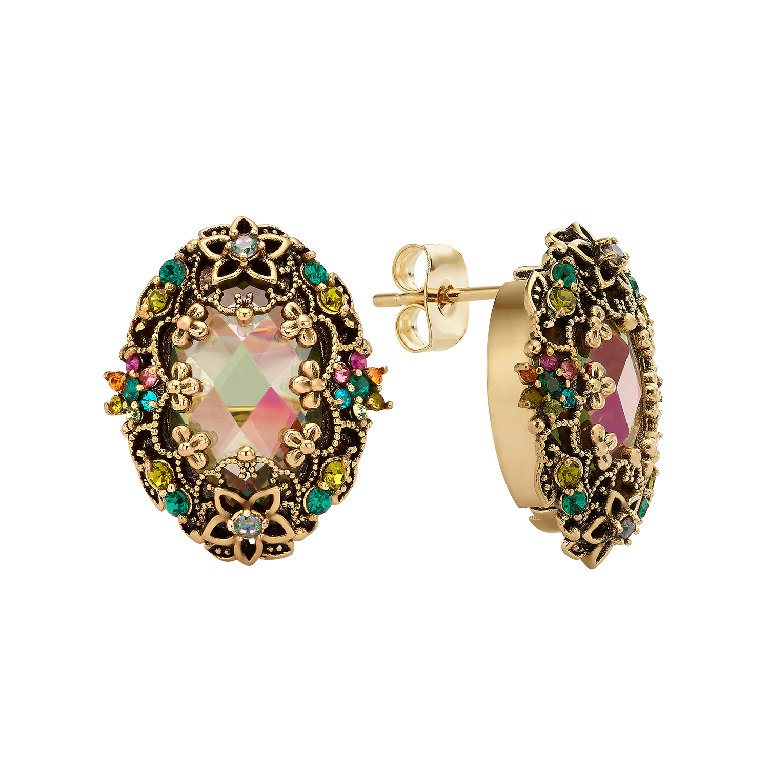 Heritage 18K Gold Plated Oval Dangle Earring with Colorful Zircons