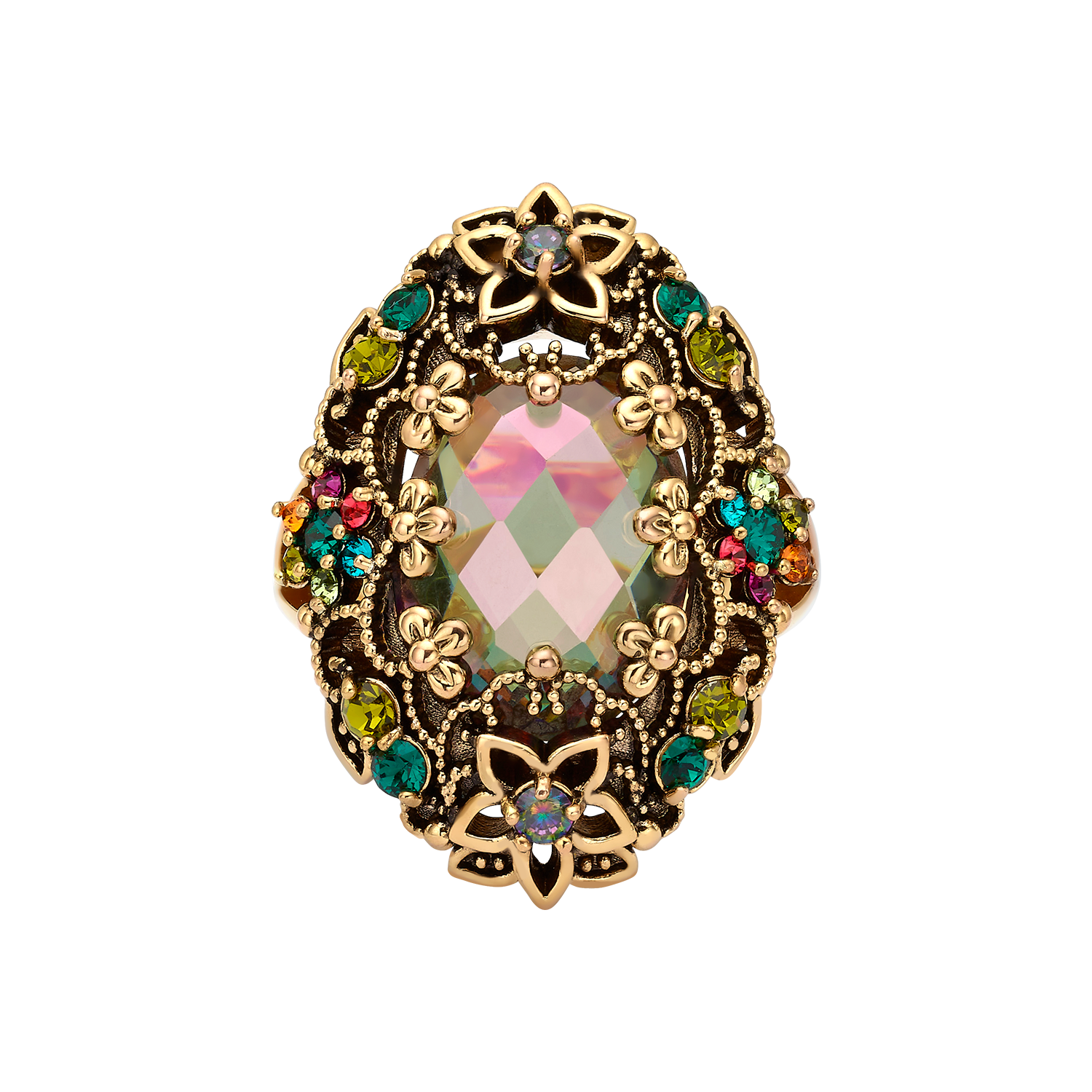An oval zircon ring in antique 18K gold plating. The ring was prepared through a meticulous goldsmithing process, entirely handmade, with attention to sparkle, light refraction and natural movement. The ring is the perfect solution for a birthday gift, wedding anniversary gift or Women's Day gift.