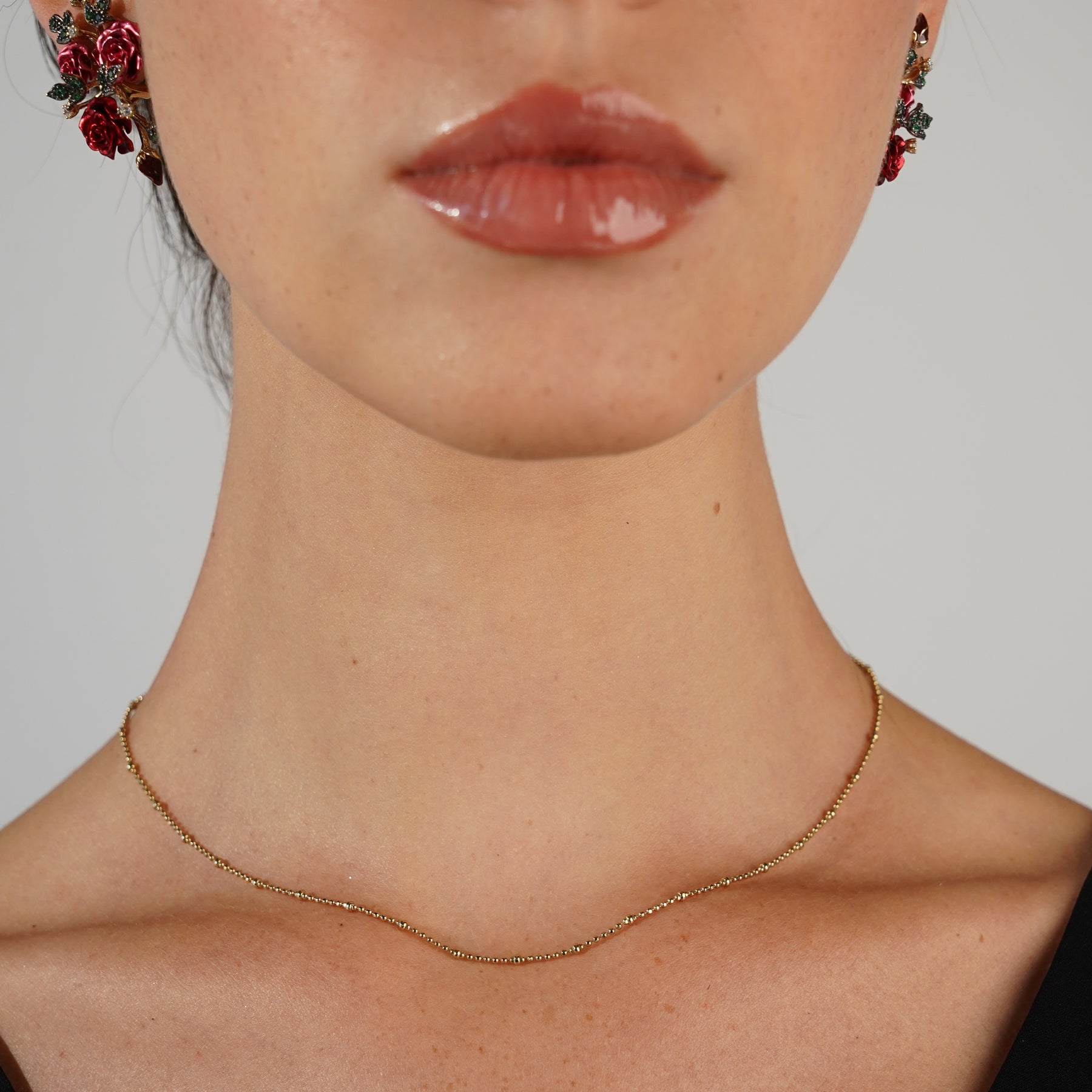 שרשרת כסף מצופה זהב 18K. השרשרת מורכבת מחוזים קטנים החיתוך דמוי יהלום המעניק לה מראה יוקרתי ומנצנץ. השרשרת, אותנ ניתן לענוד עם תיליון או בלעדיו הינה פתרון מושלם למתנה לאישה, מתנה ליום נישואים או מתנה ליום הולדת.