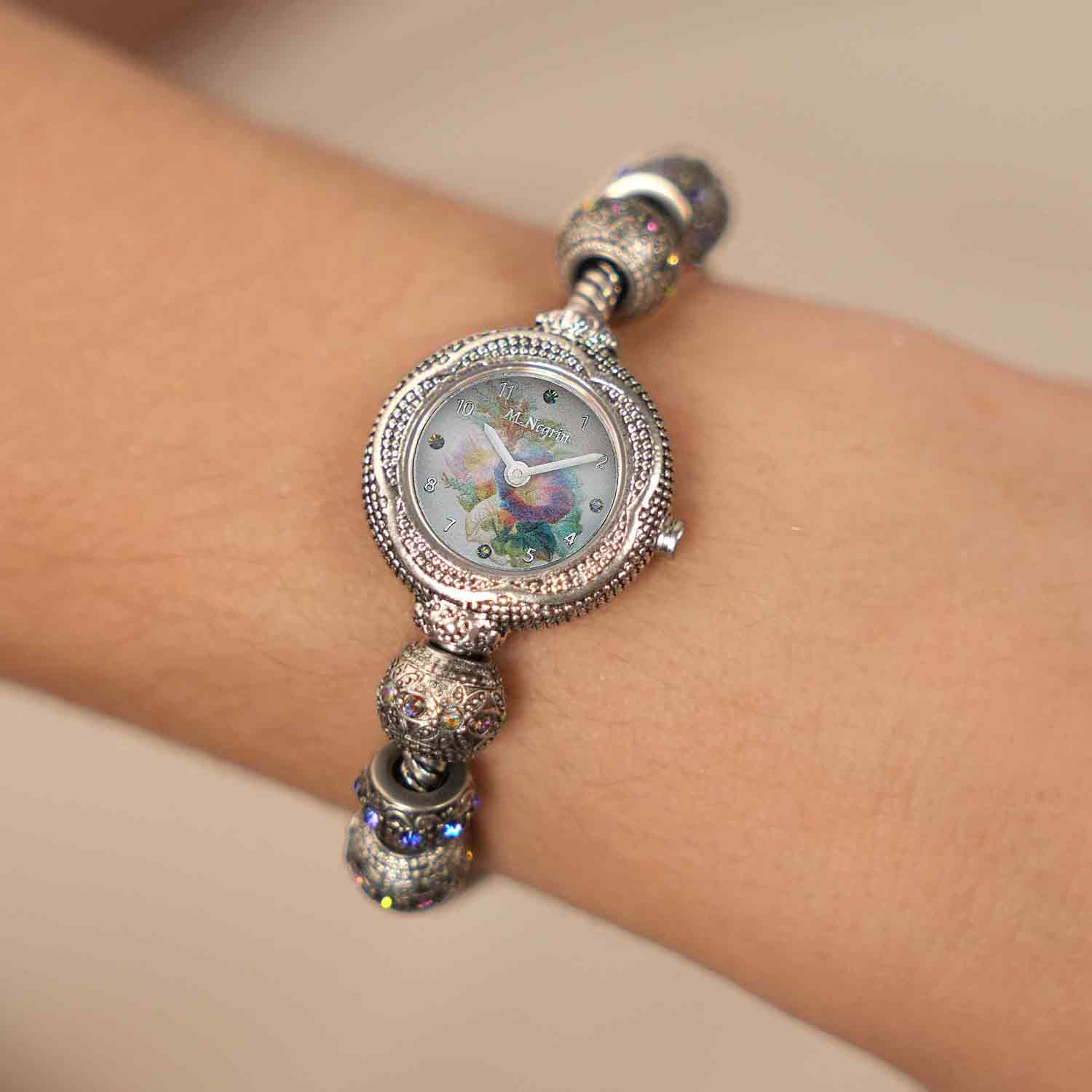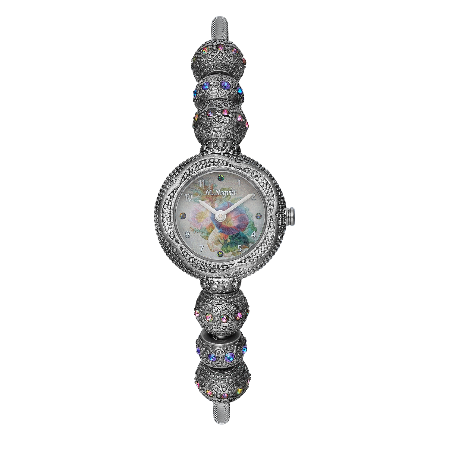 – Hypoallergenic stainless steel: The watch body, the watch back, and the bracelet or mesh strap are all made of 316L stainless steel – surgical, antibacterial, and hypoallergenic steel without nickel or mercury, suitable for all skin types. -Two-layer coating, rich and durable for years: The first layer includes real 24K gold plus a ceramic base (ceramic), which offers a thin and strong layer of protection against abrasion, scratches and fading. A rhodium (platinum) plated finish layer that undergoes a complex oxidation process that darkens its tones unevenly. This allows for a natural simulation of aging over the gold layer underneath. – Human and individual hand polishing, which provides a unique finish that differs between each watch, thus giving the new coating a natural aged look that lasts for years. -Scratch-resistant sapphire glass: The glass is made of crystalline sapphire – the second hardest substance in nature after diamond, which prevents scratches with a clean appearance that maintains a fresh look for many years. – Our watch dials are made from recycled brass, in line with our commitment to reusing materials and protecting the environment, similar to the jewelry we create. -Multi-layer printing technology: Based on the brass, we apply an innovative and environmentally friendly 3D printing process that gives the dial dramatic depth and exceptional volume. The technique highlights and enhances the beauty and small details of rare graphic works, carefully selected from the Romantic and Victorian eras (the 18th and 19th centuries, a period when the principles of the illusion of depth and three-dimensionality were created), collected from all over the world for Michal's private collection and subjected to graphic processing with a personal touch, so that each watch is in fact a personal gallery carrying with it a historical story and contemporary art. -Traditionally handmade SWAROVSKI crystal inlay Our watches are set with wax manually, using a traditional method, which gives each watch a "soul" of creative work and a personal touch, ensuring maximum human control over the quality and uniformity of the setting, and their maximum attachment to the dial, to provide maximum resistance to falling, with a sparkle and shine that will never fade. Japanese quartz mechanisms considered the most reliable in the world: All our watches are equipped with and powered by mechanisms from SEIKO or CITIZEN, each representing over 100 years of experience in watchmaking, ensuring you maximum accuracy, low energy consumption (which allows battery replacement at extended intervals), and peace of mind for years. -Classic design with water resistance for a dynamic daily routine in the modern world: The watch is designed to withstand light splashes, hand washing and even dishwashing. It is specially adapted to the modern pace of life, allowing you to easily integrate it into a dynamic daily routine without fear.