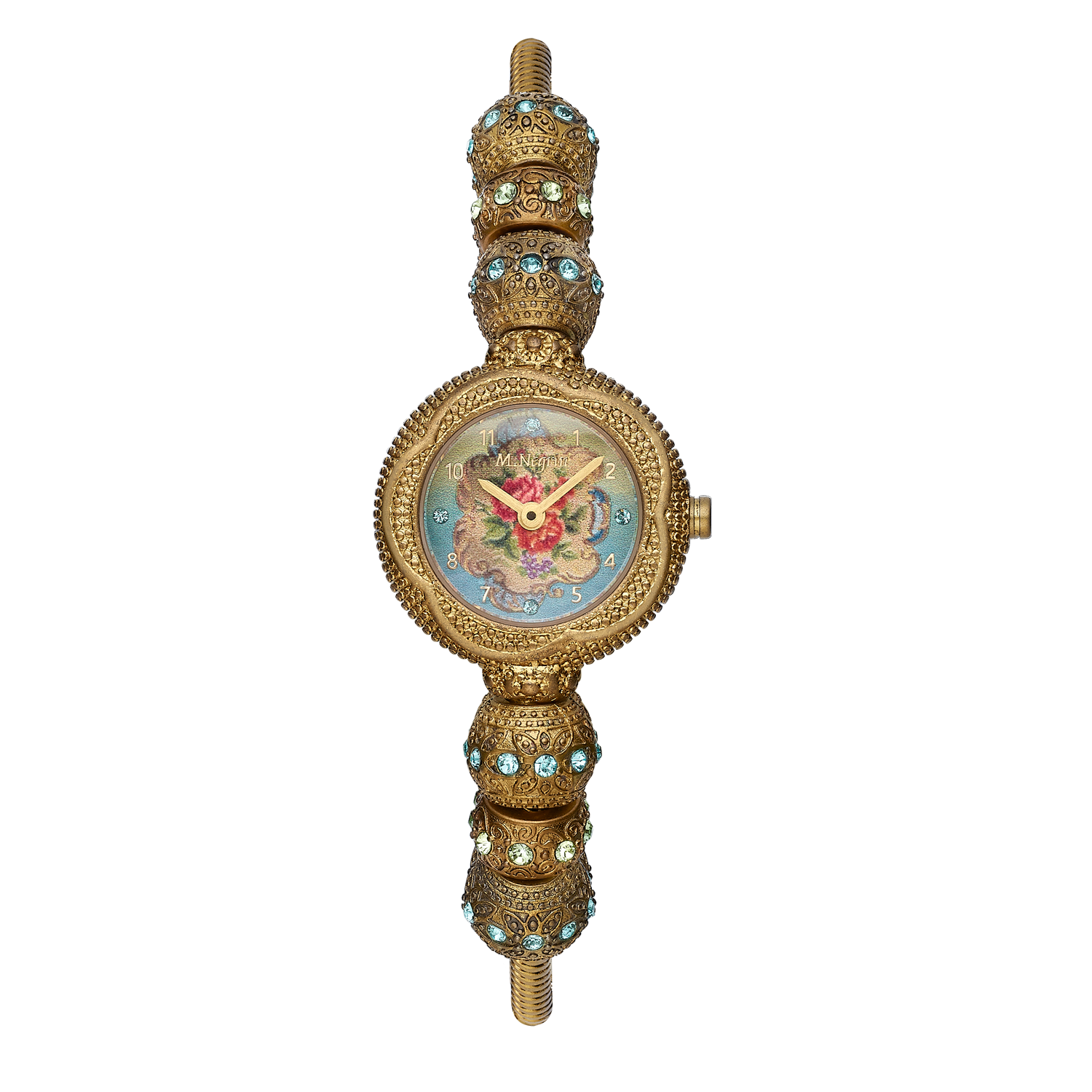 – Hypoallergenic stainless steel: The watch body, the watch back, and the bracelet or mesh strap are all made of 316L stainless steel – surgical, antibacterial, and hypoallergenic steel without nickel or mercury, suitable for all skin types. -Two-layer coating, rich and durable for years: The first layer includes real 24K gold plus a ceramic base (ceramic), which offers a thin and strong layer of protection against abrasion, scratches and fading. A rhodium (platinum) plated finish layer that undergoes a complex oxidation process that darkens its tones unevenly. This allows for a natural simulation of aging over the gold layer underneath. – Human and individual hand polishing, which provides a unique finish that differs between each watch, thus giving the new coating a natural aged look that lasts for years. -Scratch-resistant sapphire glass: The glass is made of crystalline sapphire – the second hardest substance in nature after diamond, which prevents scratches with a clean appearance that maintains a fresh look for many years. – Our watch dials are made from recycled brass, in line with our commitment to reusing materials and protecting the environment, similar to the jewelry we create. -Multi-layer printing technology: Based on the brass, we apply an innovative and environmentally friendly 3D printing process that gives the dial dramatic depth and exceptional volume. The technique highlights and enhances the beauty and small details of rare graphic works, carefully selected from the Romantic and Victorian eras (the 18th and 19th centuries, a period when the principles of the illusion of depth and three-dimensionality were created), collected from all over the world for Michal's private collection and subjected to graphic processing with a personal touch, so that each watch is in fact a personal gallery carrying with it a historical story and contemporary art. -Traditionally handmade SWAROVSKI crystal inlay Our watches are set with wax manually, using a traditional method, which gives each watch a "soul" of creative work and a personal touch, ensuring maximum human control over the quality and uniformity of the setting, and their maximum attachment to the dial, to provide maximum resistance to falling, with a sparkle and shine that will never fade. Japanese quartz mechanisms considered the most reliable in the world: All our watches are equipped with and powered by mechanisms from SEIKO or CITIZEN, each representing over 100 years of experience in watchmaking, ensuring you maximum accuracy, low energy consumption (which allows battery replacement at extended intervals), and peace of mind for years. -Classic design with water resistance for a dynamic daily routine in the modern world: The watch is designed to withstand light splashes, hand washing and even dishwashing. It is specially adapted to the modern pace of life, allowing you to easily integrate it into a dynamic daily routine without fear.