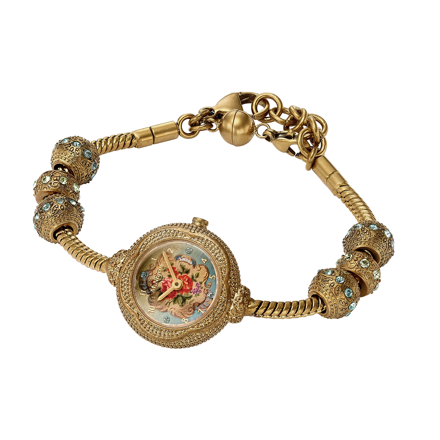 Women's wristwatch with 6 charm bracelet inlaid with gold plating