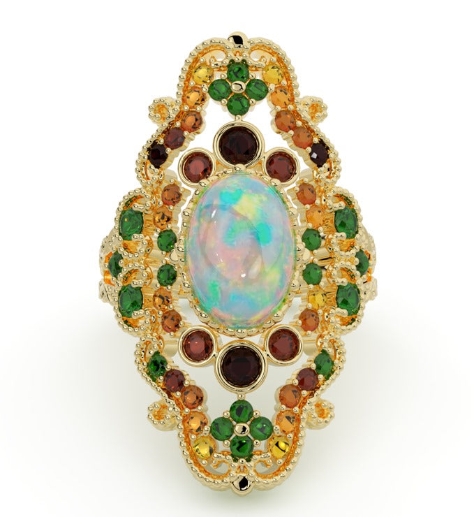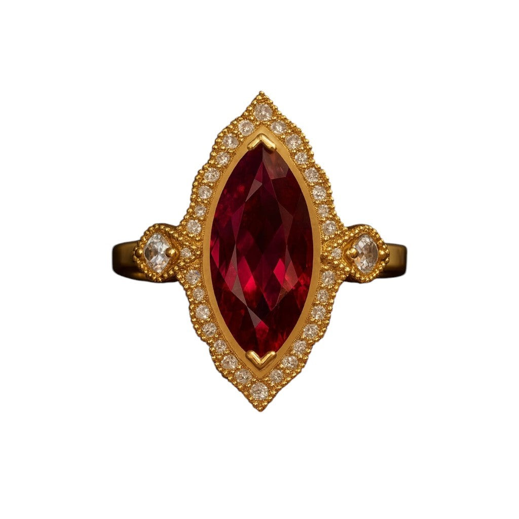 Ivanka Single Gold Ring - Set with Ruby Stones