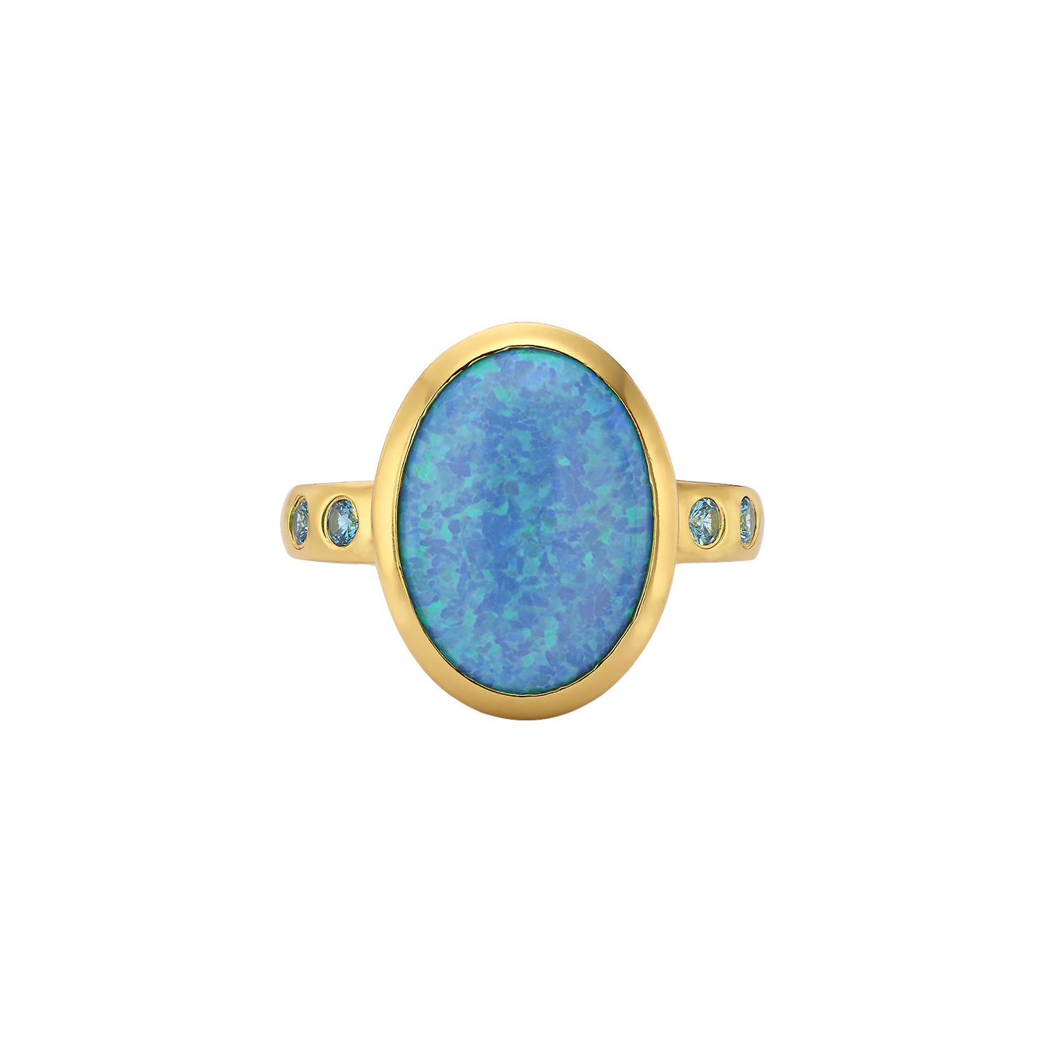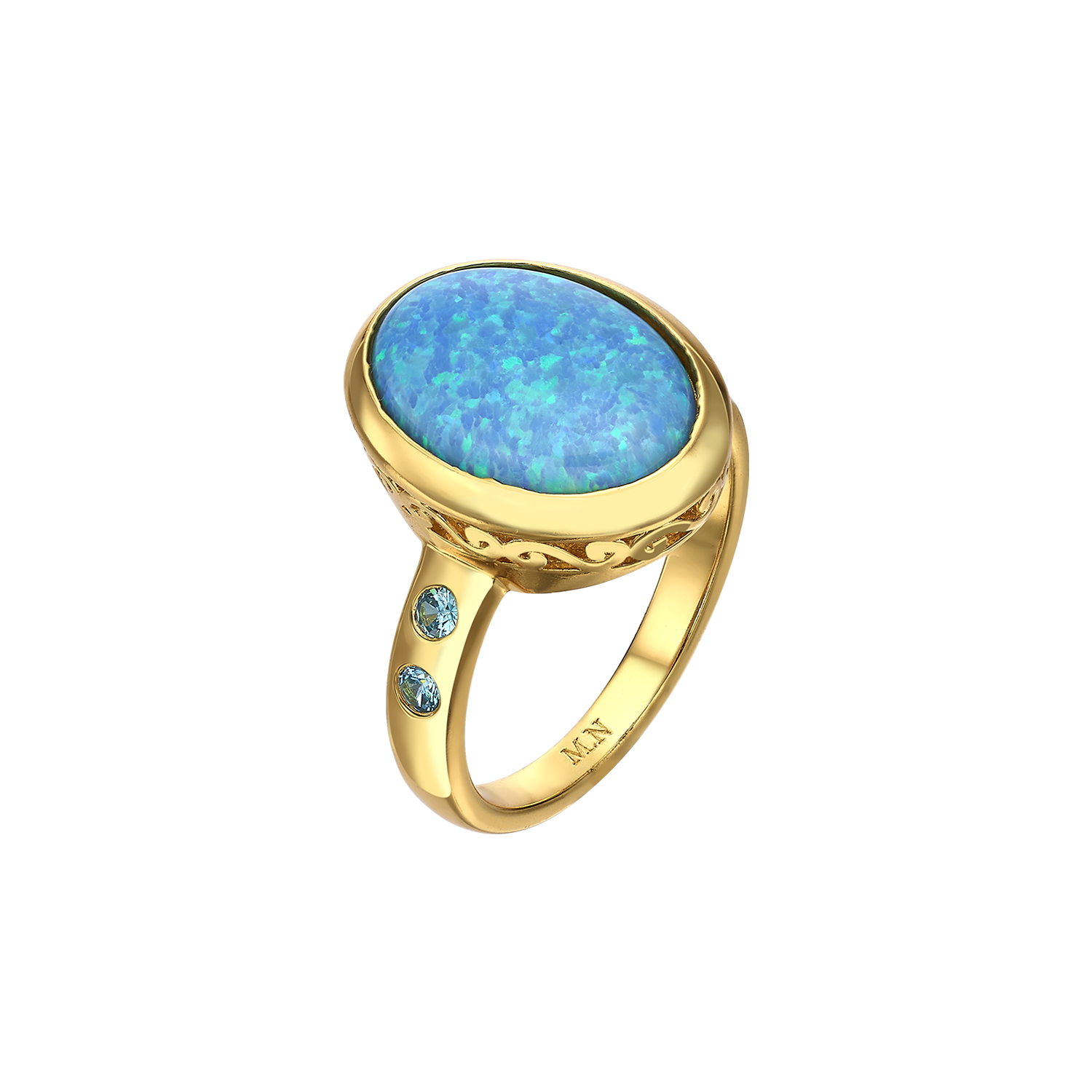 24K Gold Plated Ring with Blue Mare Synthetic Opal Stones
