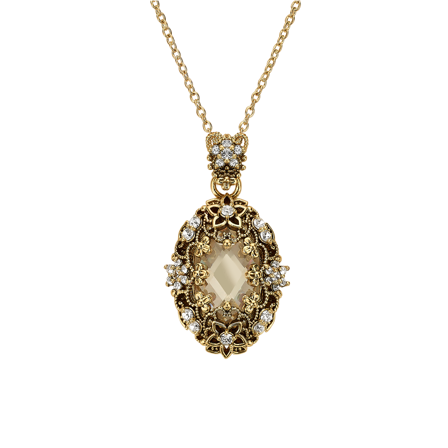 18K gold plated necklace with oval pendant with clear crystal L Heritage