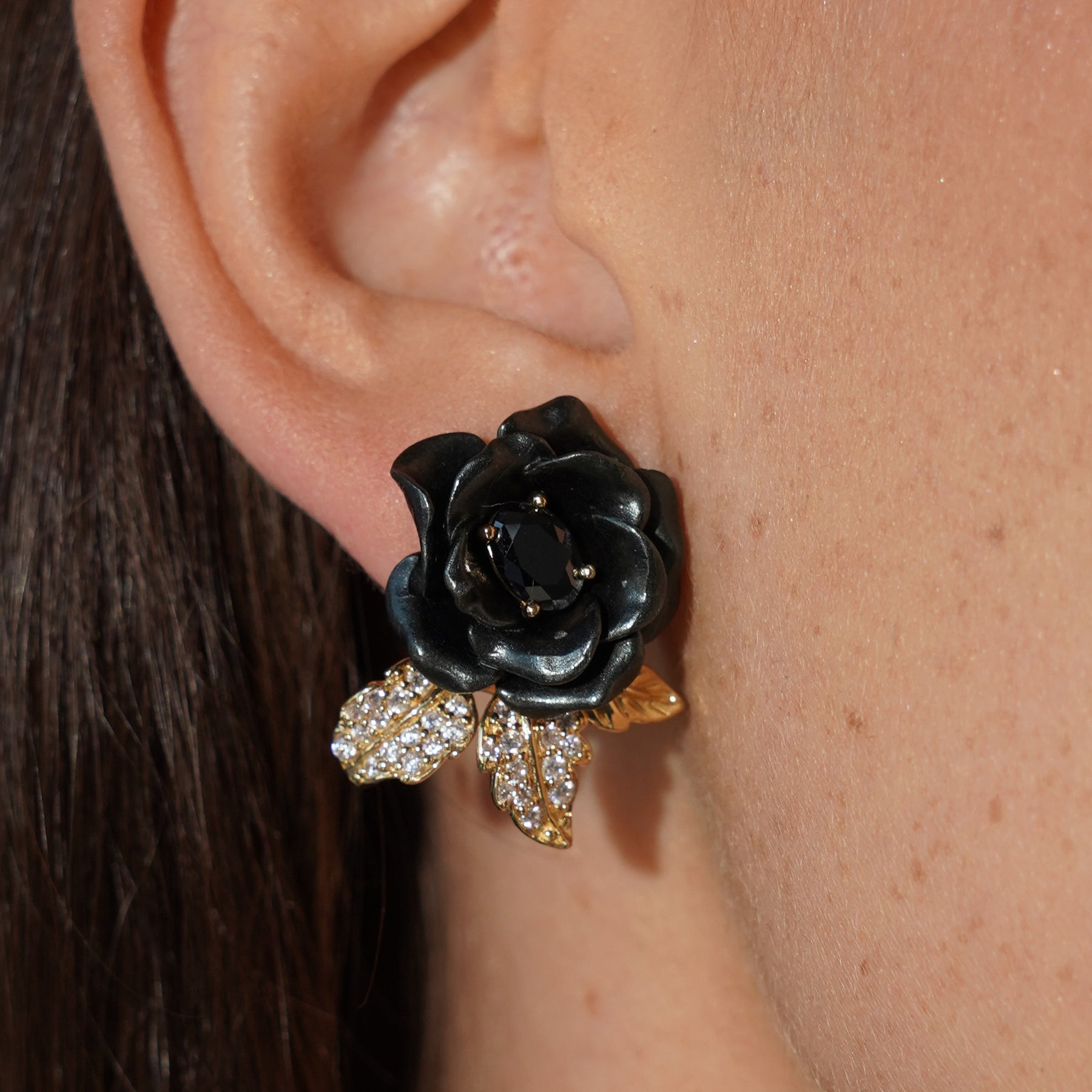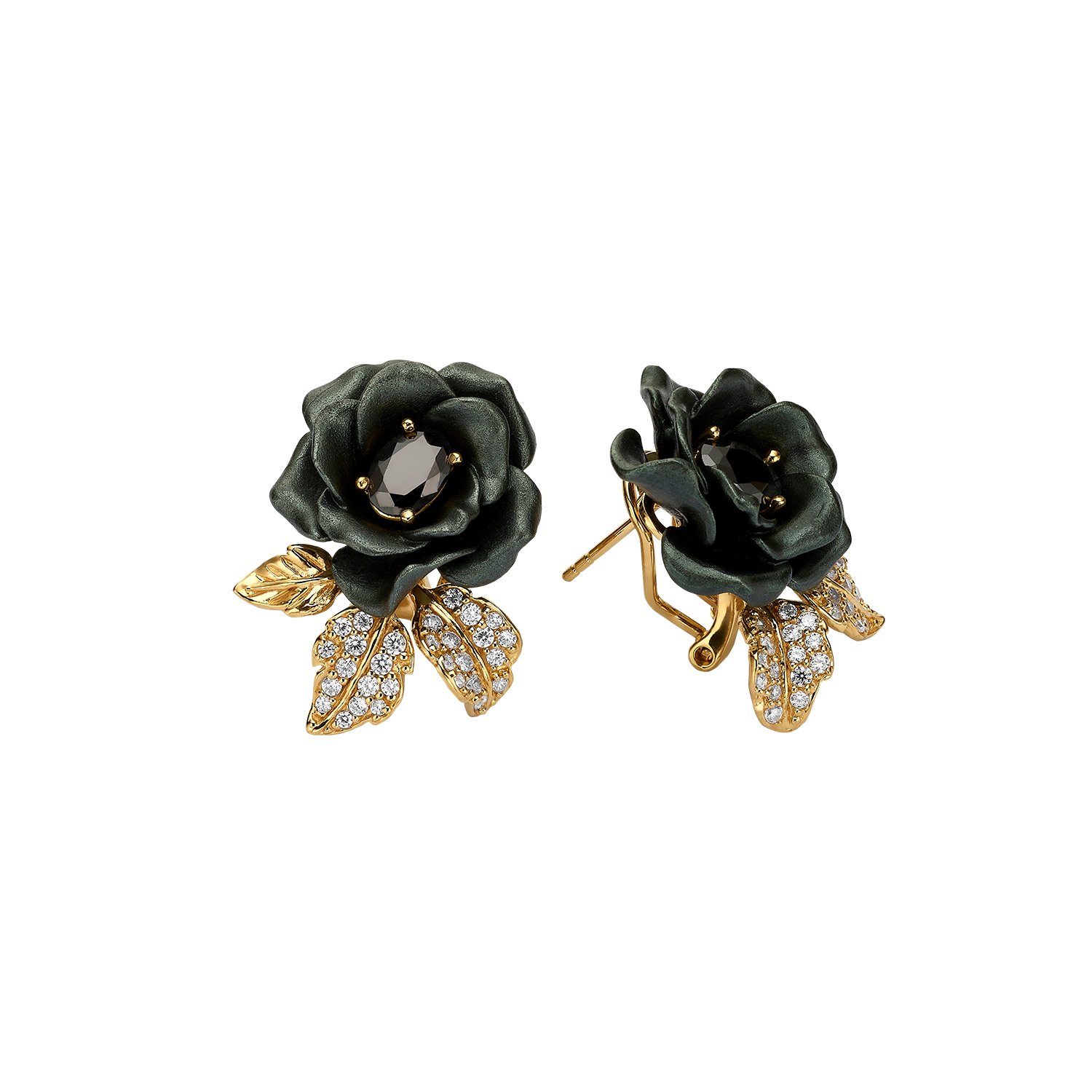 Silver earrings with 18K gold plating and delicate layers of aluminum that create a perfect three-dimensional look. The collection focuses on particularly meticulous goldsmithing techniques and each stone is hand-set using the "prong setting" method. The earrings, in the Art Nouveau style, are a perfect solution for a gift for a woman, a wedding anniversary gift or a birthday gift.