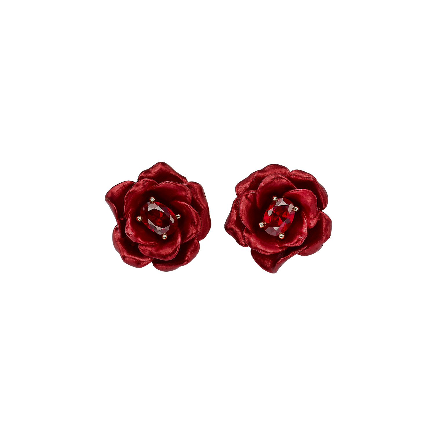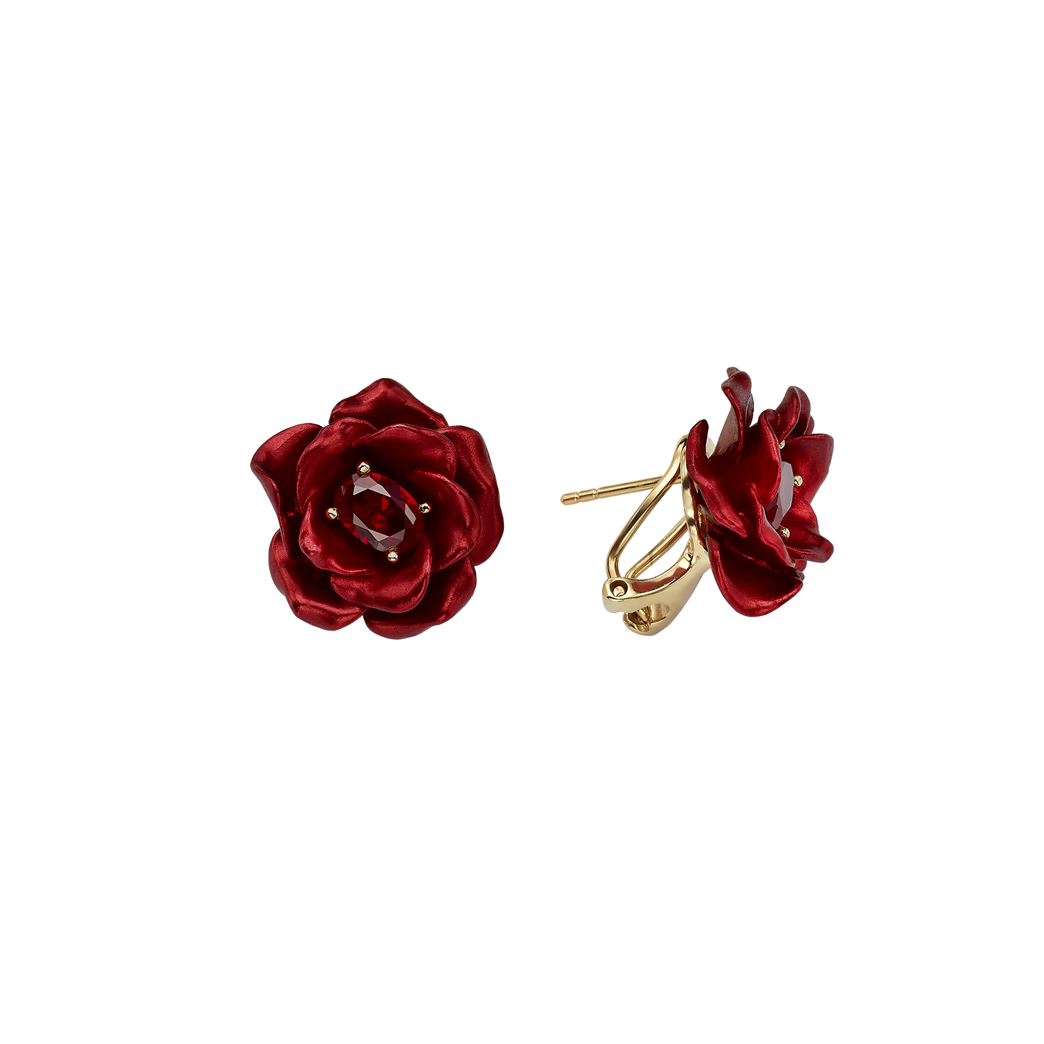 18K gold-plated earring with ruby ​​nano-settle and Monarchy enamel finish