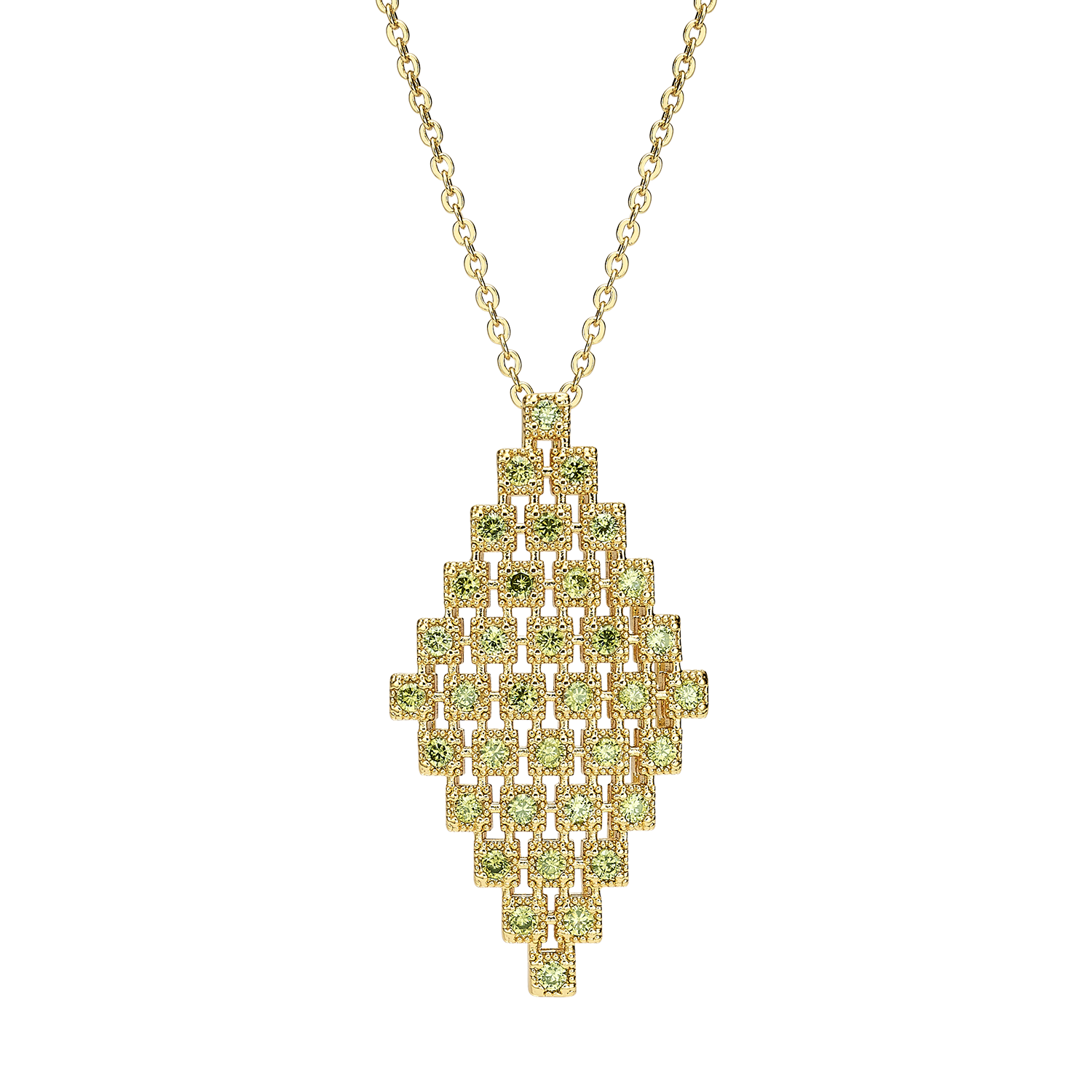 18K gold-plated necklace with a diamond pendant set with zircons Volver