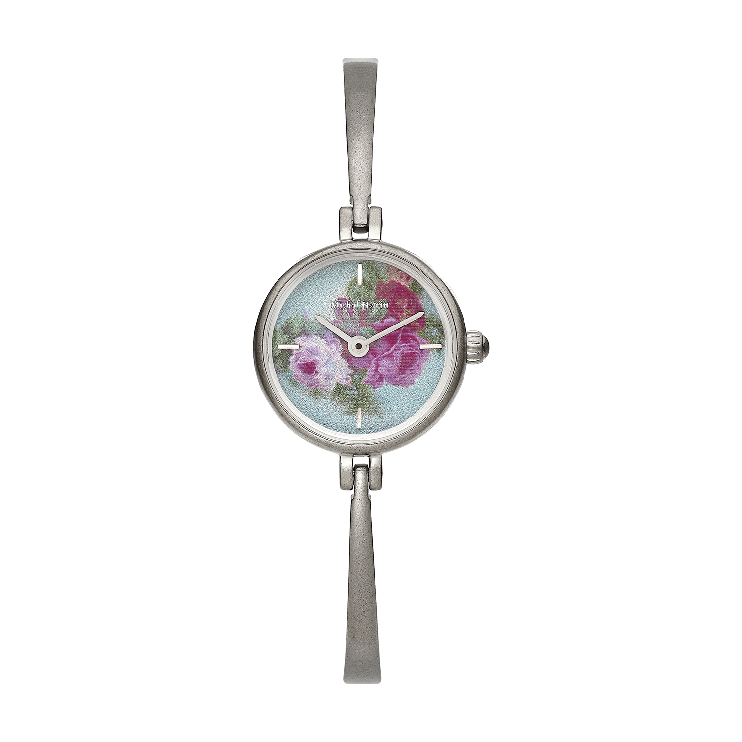 Bengal wristwatch for women with rhodium plating and a light blue dial decorated with flowers