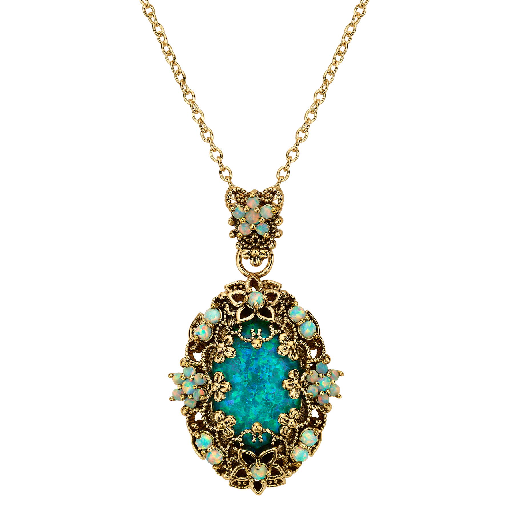18K Gold Plated Necklace with Oval Pendant with Synthetic Opal L Heritage