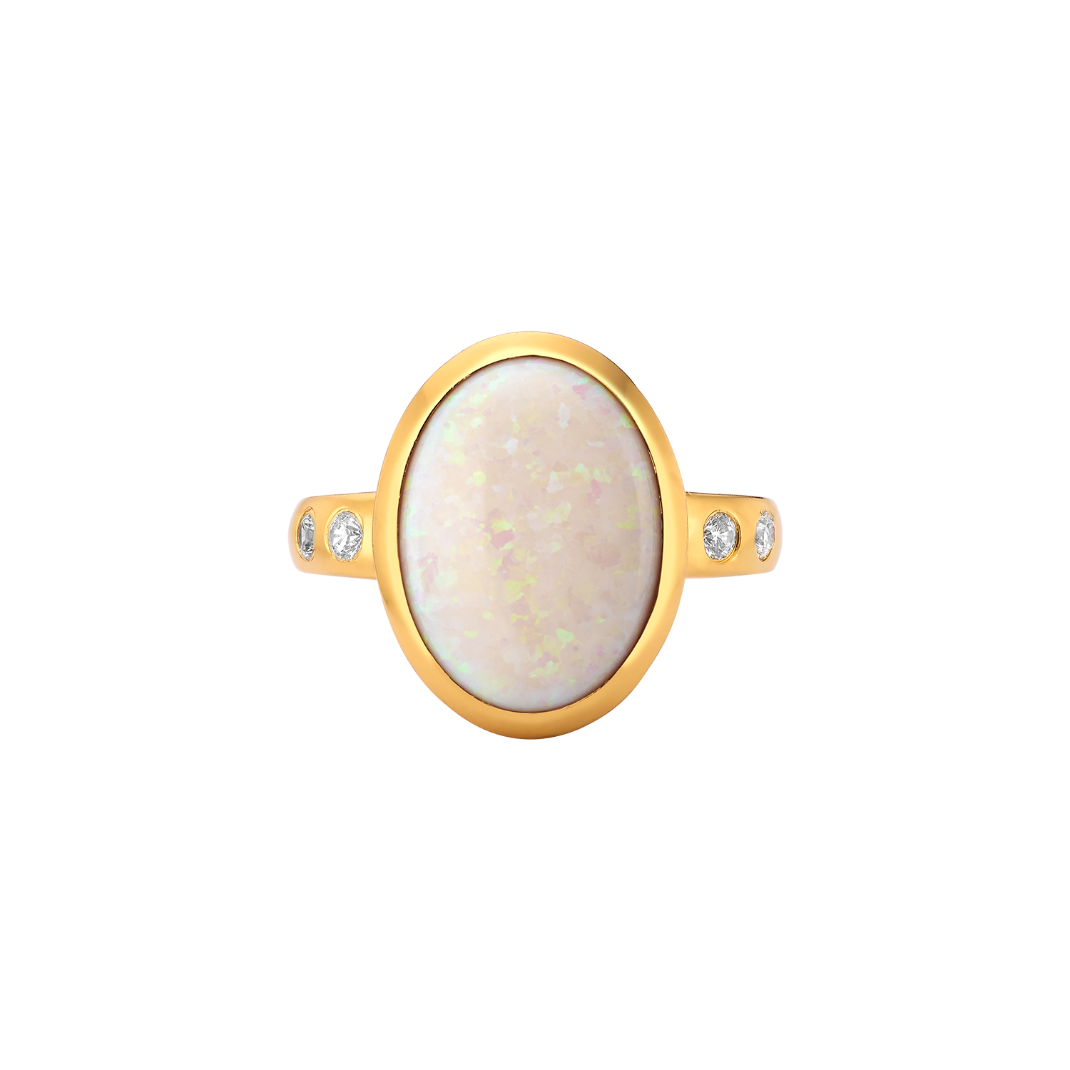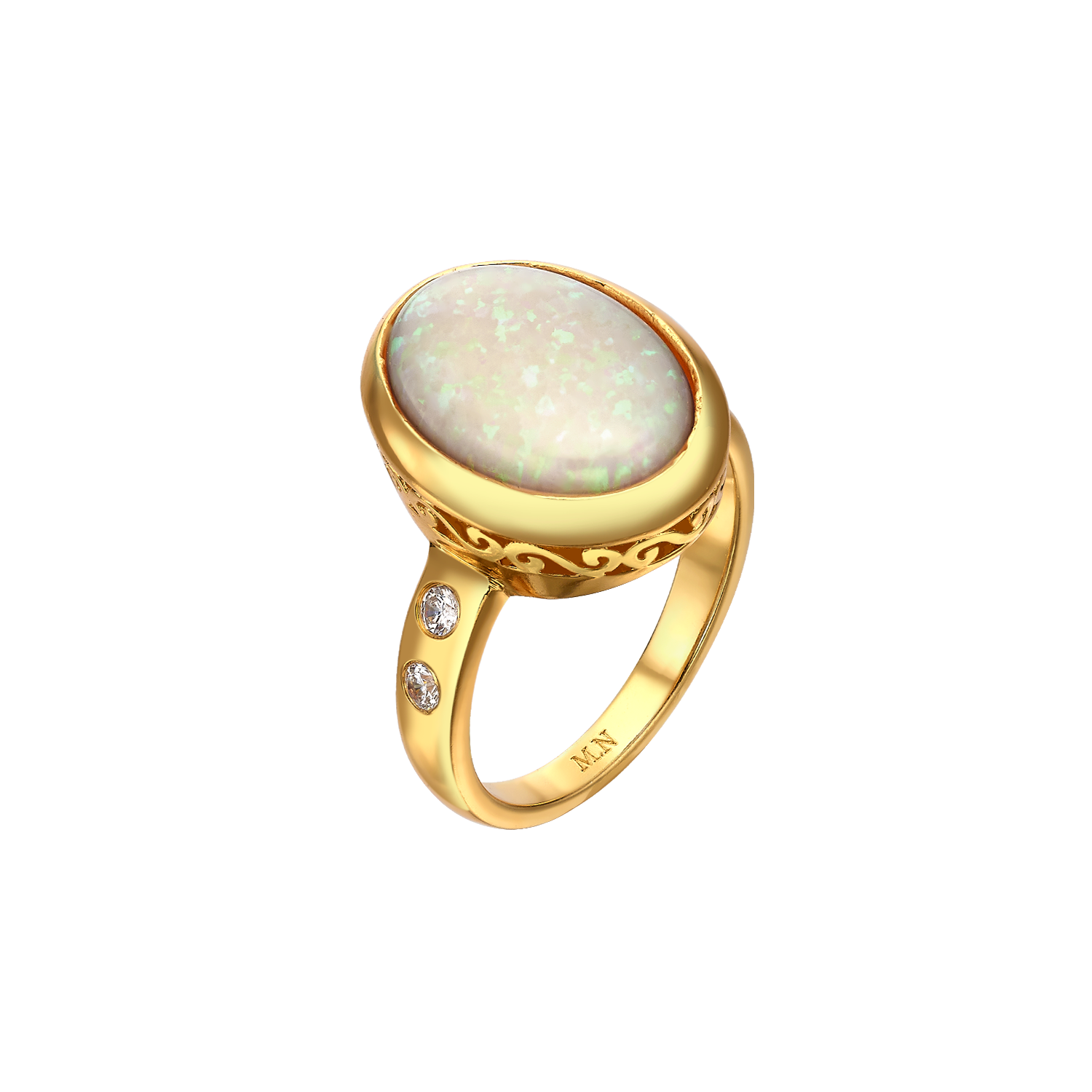 24K Gold Plated Ring with White Synthetic Opal Stones Mare