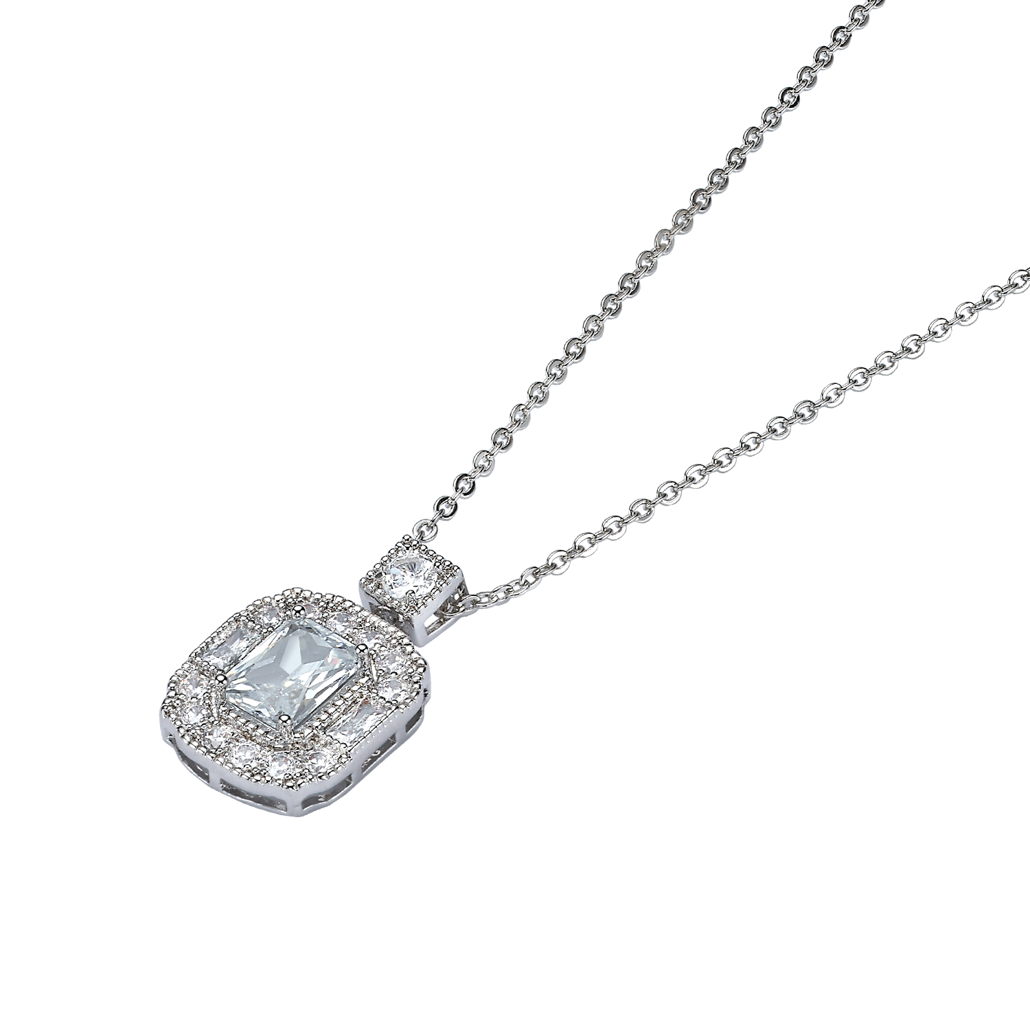 18K Rhodium Plated Gold Chain with Rectangular Pendant Set with Zircons Volver