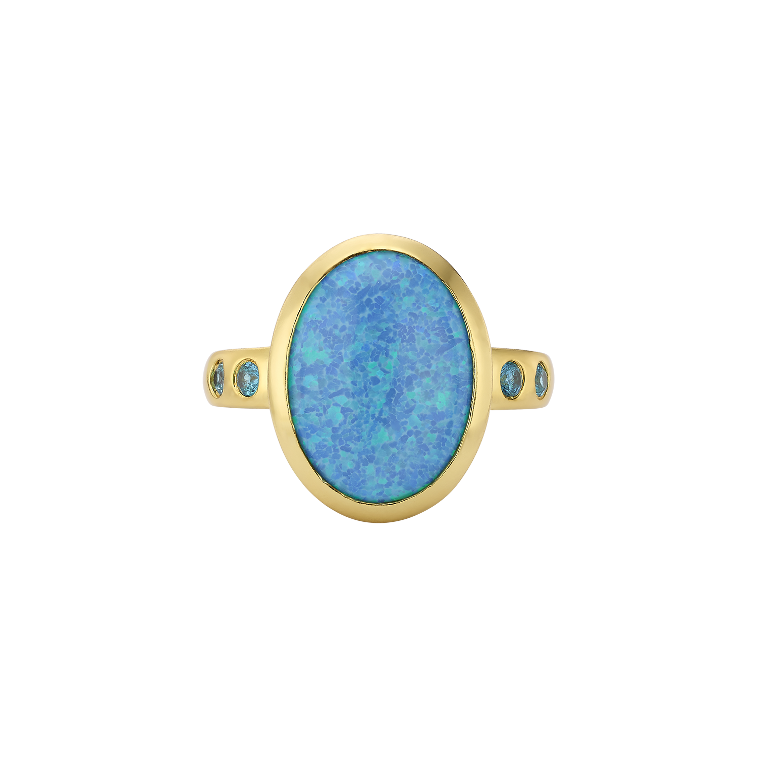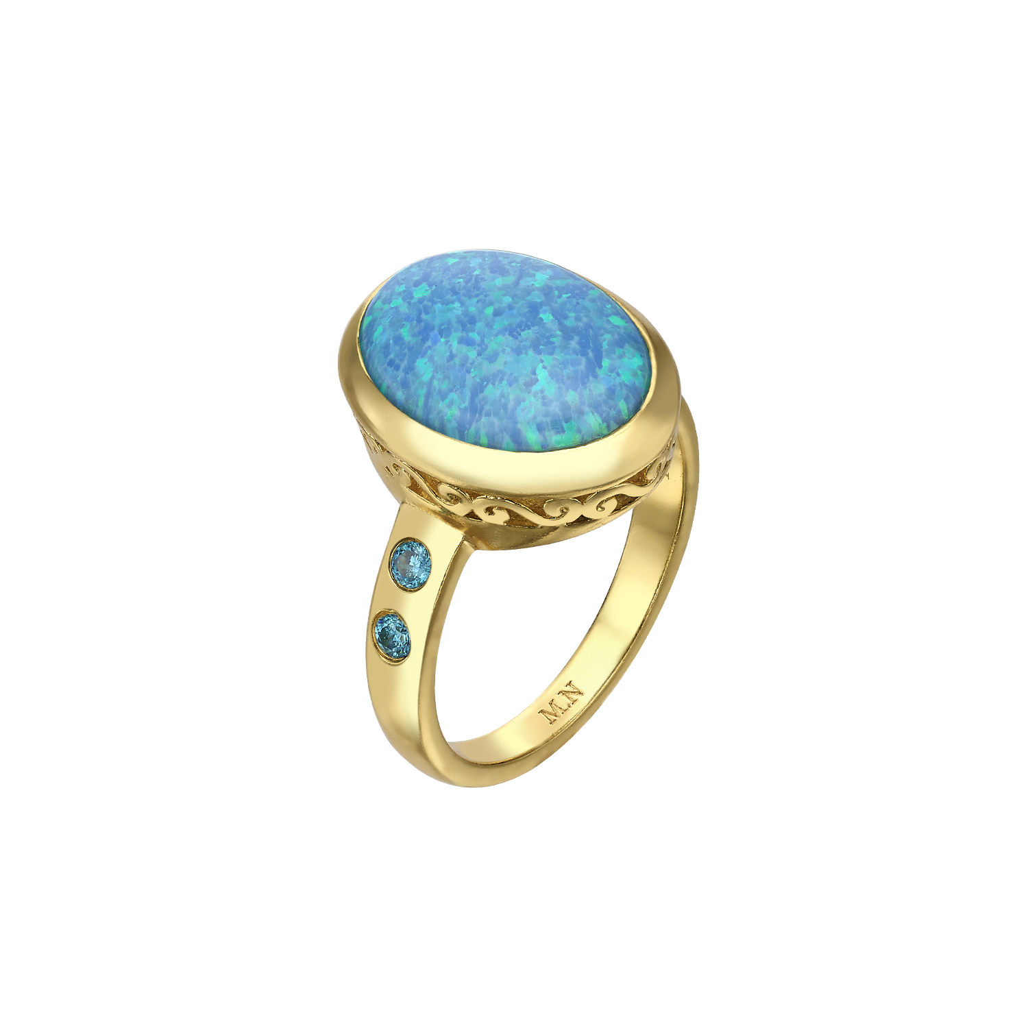 18K Gold Plated Ring with Blue Mare Synthetic Opal Stones